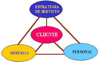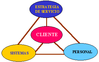 El triángulo de servicio es una forma de diagramar la interacción existente entre estos tres elementos básicos, que deben funcionar conjuntamente para mantener un servicio de alto nivel de calidad.